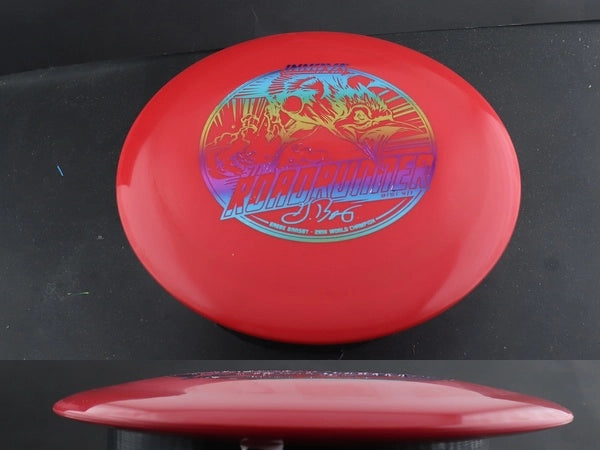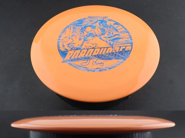 The Roadrunner by Innova is an understable fairway-to-distance driver designed to help players achieve maximum distance with minimal effort. Its high turn and exceptional glide make it one of the easiest drivers to throw straight and far, especially for developing arms or players seeking controlled turnover lines.