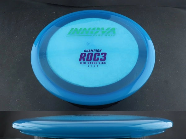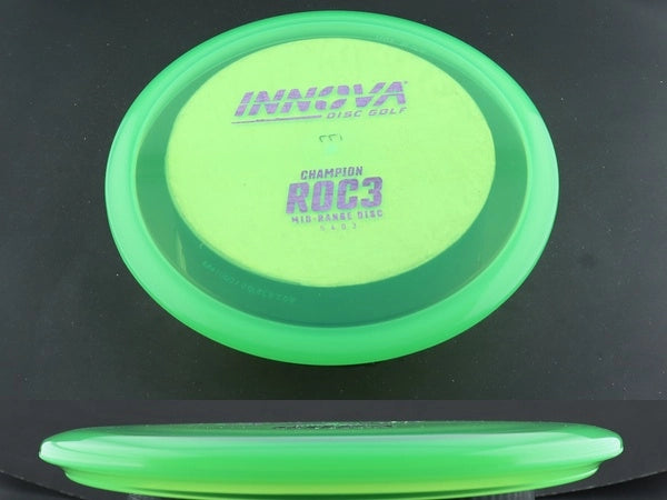 The Champion Roc3 by Innova is a stable midrange built for consistency, control, and confidence. Champion plastic provides a stiff, slightly domey feel with premium durability, giving the Roc3 extra torque resistance and a reliable fade that holds up under power and in windy conditions.