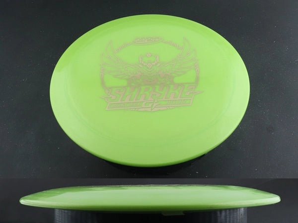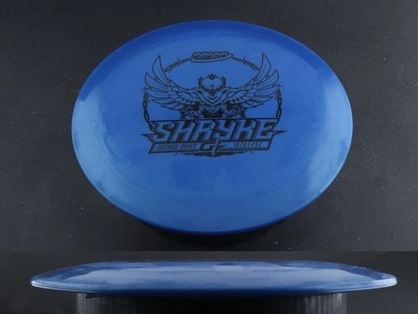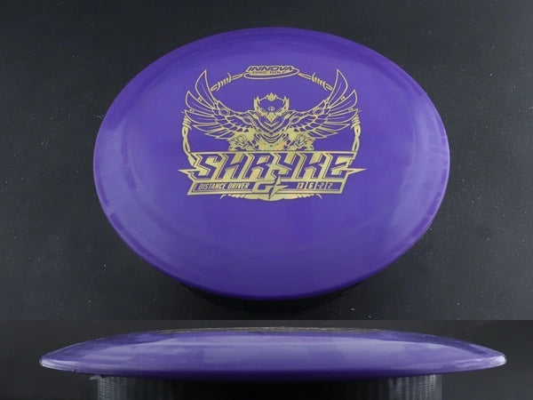The GStar Shryke by Innova is a high-speed distance driver built for effortless distance, huge glide, and smooth, workable control. GStar plastic provides extra flexibility and a tackier feel, offering improved grip and a slightly less overstable flight than Champion or Star runs—perfect for cold-weather rounds or players seeking added comfort in hand.