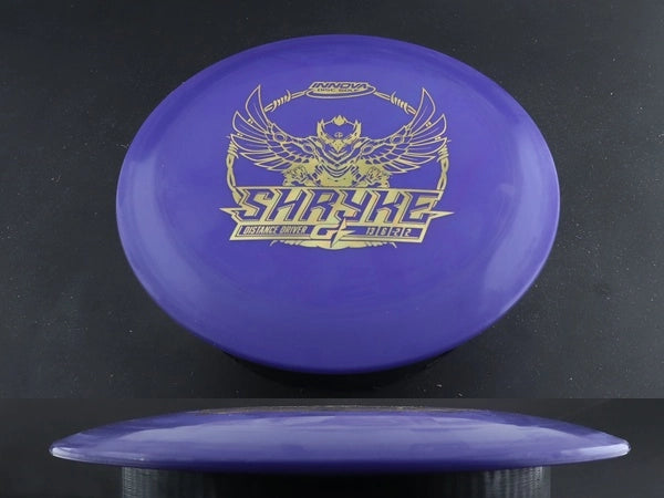 The GStar Shryke by Innova is a high-speed distance driver built for effortless distance, huge glide, and smooth, workable control. GStar plastic provides extra flexibility and a tackier feel, offering improved grip and a slightly less overstable flight than Champion or Star runs—perfect for cold-weather rounds or players seeking added comfort in hand.