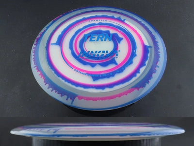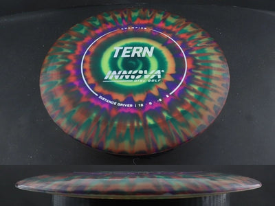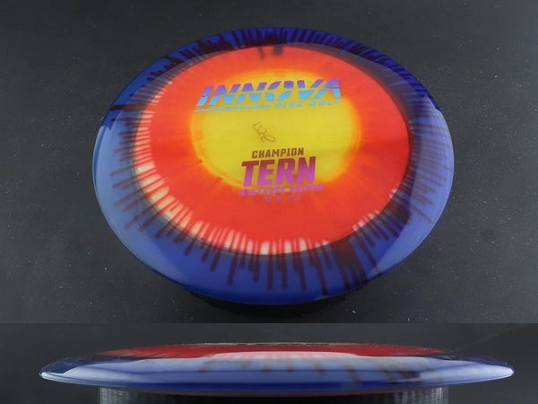 The Champion Dyed Tern by Innova combines the trusted performance of the stock Champion Tern with vibrant, full-color dyed designs that make every disc unique. Made from premium Champion plastic, it offers long-lasting durability, a slightly firmer feel, and the same dependable glide and controlled turn that make the Tern a favorite for max-distance throws.
