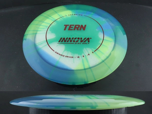 The Champion Dyed Tern by Innova combines the trusted performance of the stock Champion Tern with vibrant, full-color dyed designs that make every disc unique. Made from premium Champion plastic, it offers long-lasting durability, a slightly firmer feel, and the same dependable glide and controlled turn that make the Tern a favorite for max-distance throws.