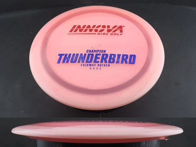 The Champion Thunderbird by Innova is a power control driver built for accuracy, consistency, and trusted stability. Champion plastic offers a stiff, durable feel that maintains its flight characteristics longer and provides a touch more overstability than other blends—perfect for players who throw with confidence and power.