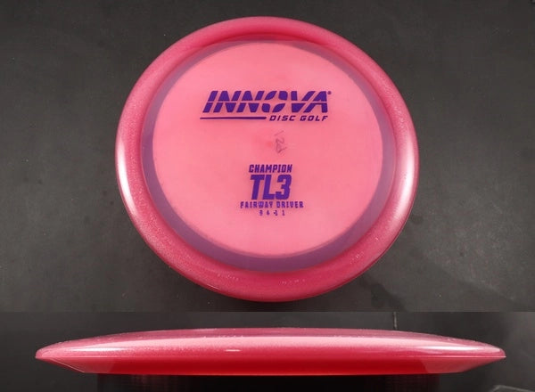 The Champion TL3 by Innova is a dependable fairway driver built for precision, control, and consistency. Made from premium Champion plastic, it offers a firm, durable feel with added torque resistance and a touch more stability than other blends. This makes it perfect for confident throws in windy conditions and for players who want a straighter flight with a reliable finish.