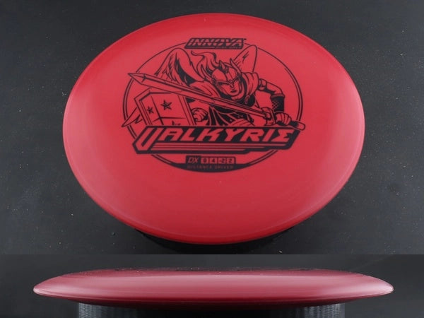 At speed the DX Valkyrie hyzer-flips to flat, glides beautifully down the fairway, and finishes with a gentle fade. As it wears, it becomes straighter and eventually develops into a dependable understable flyer—perfect for long turnovers, tailwind drives, or smooth hyzer-flips through tight gaps.