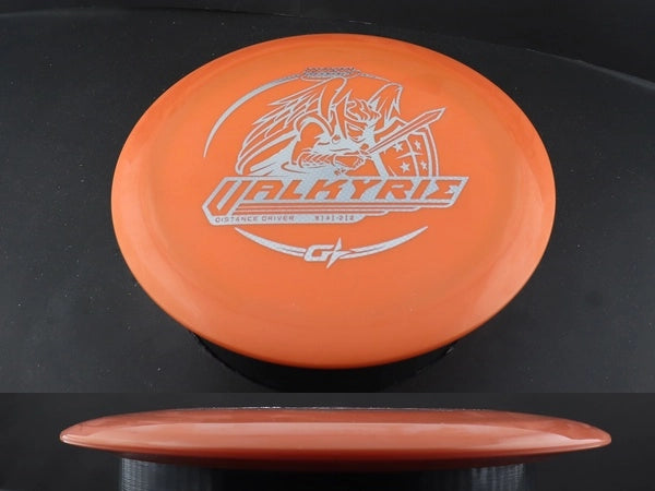 The Valkyrie in GStar plastic is a glidey, workable distance driver with a softer, flexible feel and excellent grip—especially in cooler or wet conditions. GStar runs are slightly less stable than Star or Champion, making hyzer-flips and long turnovers easier while keeping a smooth, reliable finish.