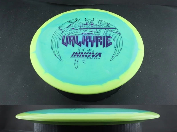 The Halo Star Valkyrie by Innova is a premium, stable distance driver that combines beautiful two-tone design with trusted control and glide. Halo Star plastic features a firmer, more durable outer rim for extra torque resistance and slightly more stability than standard Star runs, while maintaining the Valkyrie’s signature glide and smooth release.