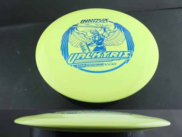The Star Valkyrie by Innova is a versatile distance driver that perfectly balances glide, control, and a touch of high-speed turn. Star plastic provides superior grip, exceptional durability, and slightly increased stability compared to baseline plastics—making the Valkyrie a dependable choice for players of all skill levels.