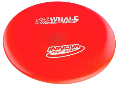 The Innova Whale in XT plastic offers a premium baseline feel with added durability and a confident, tacky grip. XT plastic sits between DX and premium blends, giving the Whale a slightly firmer feel with excellent traction in all conditions. This version is popular for both putting and throwing, holding its flight longer than DX while still providing outstanding touch and control.