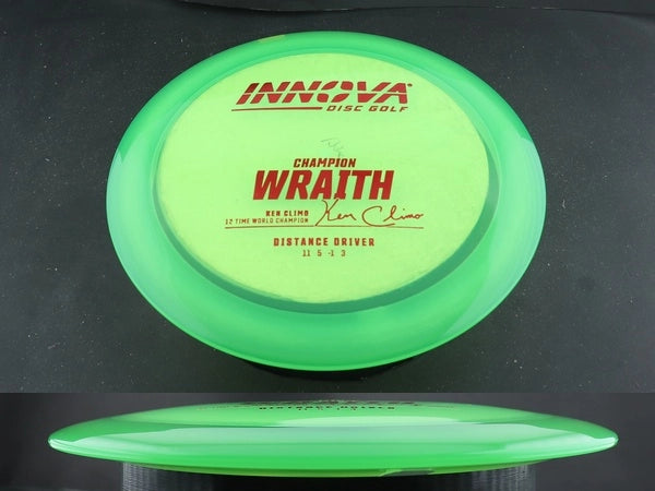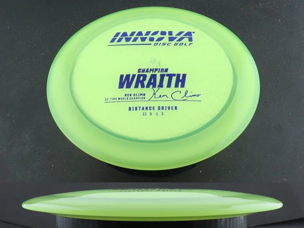 The Champion Wraith by Innova is a high-speed distance driver built for power, control, and consistency. Champion plastic delivers a firm, durable feel and slightly more overstability than other blends, giving the Wraith exceptional torque resistance and long-lasting flight reliability.