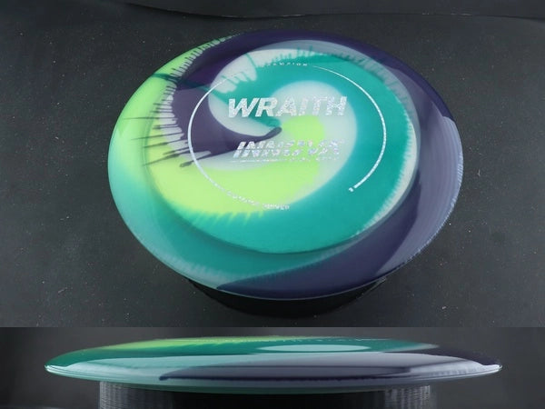 The Dyed Champion Wraith by Innova delivers long-distance control with the durability and stability of Champion plastic—enhanced by stunning full-color dye designs that make every disc unique. Known for its dependable flight and torque resistance, the Wraith provides the perfect balance of speed, glide, and fade for powerful backhands or forehands.