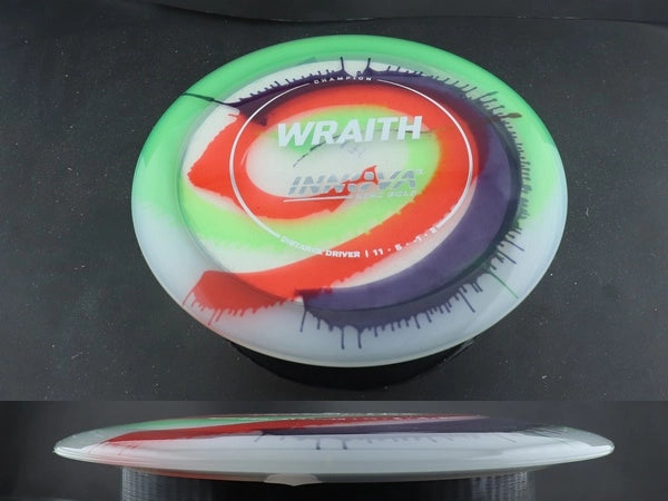 The Dyed Champion Wraith by Innova delivers long-distance control with the durability and stability of Champion plastic—enhanced by stunning full-color dye designs that make every disc unique. Known for its dependable flight and torque resistance, the Wraith provides the perfect balance of speed, glide, and fade for powerful backhands or forehands.