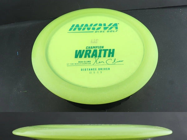 The Champion Wraith by Innova is a high-speed distance driver built for power, control, and consistency. Champion plastic delivers a firm, durable feel and slightly more overstability than other blends, giving the Wraith exceptional torque resistance and long-lasting flight reliability.