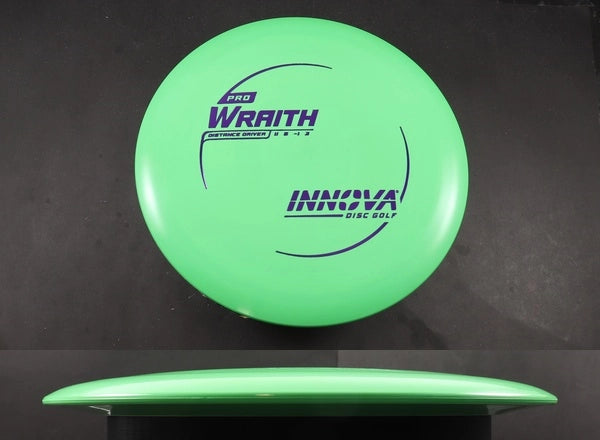 The Wraith in Pro plastic by Innova is a high-speed distance driver that combines long glide, reliable stability, and excellent grip. Pro plastic offers a softer, more flexible feel than premium blends, providing enhanced glide and easier distance while still maintaining the Wraith’s trusted control and fade.