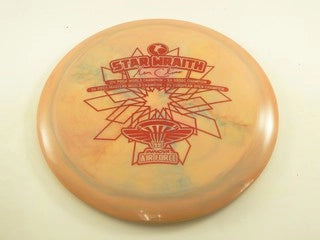 The Dyed Star Wraith by Innova combines trusted high-speed distance with unique factory-dyed designs that stand out on the course. Star plastic provides a grippy, durable feel with consistent stability, while the added style of custom dye patterns gives each disc a one-of-a-kind look.