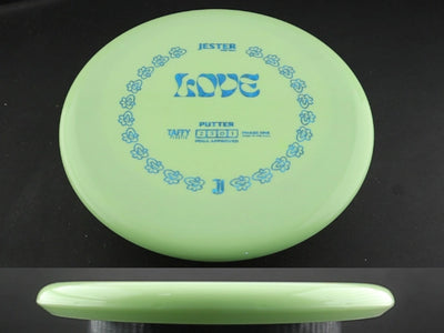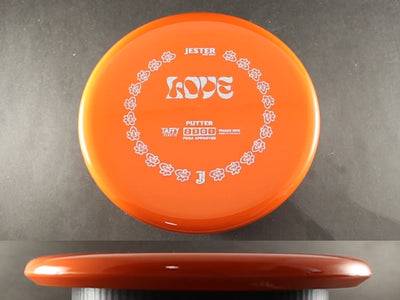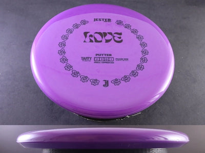 The Jester Love is a straight, confidence-building putter made to grab chains and fly true. Molded in Taffy plastic, it’s a premium, opaque blend with a tacky grip and long-lasting durability—great for putts, pitch-ups, and dependable tee-putter shots.