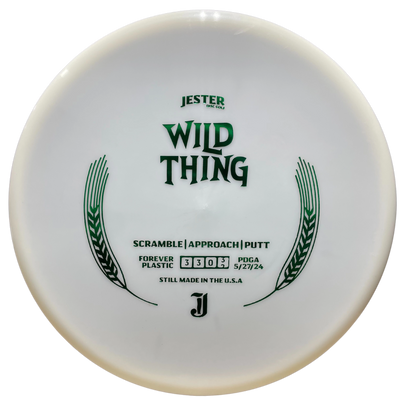 The Jester Disc Golf Wild Thing in Forever Plastic is a fast, overstable distance driver built for powerful throws, confident control, and maximum reliability. Designed to handle torque and wind with ease, the Wild Thing offers a commanding flight that stays true even when thrown hard. Its wide rim and aggressive profile deliver speed and stability, while the Forever Plastic blend provides a premium, long-lasting feel that maintains grip and performance round after round.