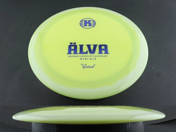 The K1 Grind Alva handles power well, offering effortless turn that sets up long, drifting S-curves before fading back with confidence. The generous glide helps it stay in the air longer, while the moderate fade keeps it predictable even when thrown hard.