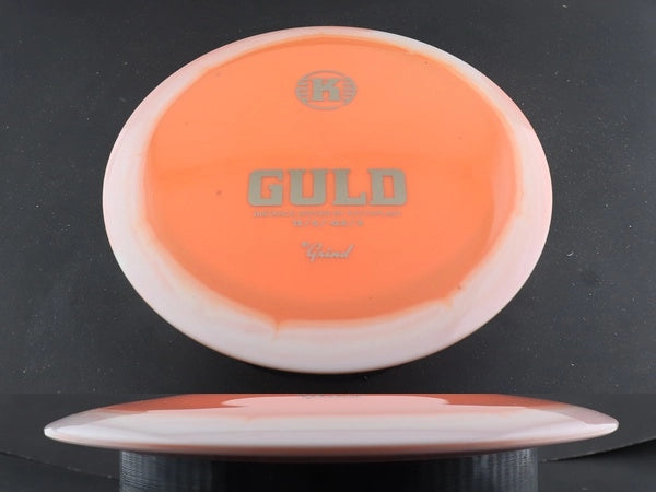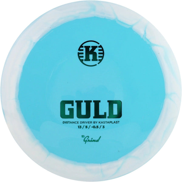 In K1 Grind, the Guld holds its line longer before finishing with a strong, dependable fade. The added firmness in this blend gives the disc a slightly more overstable personality, helping it resist unwanted turn on full-power rips or forehand drives. Players will see a penetrating, glidey push followed by a punchy fade that remains consistent in wind or under torque.