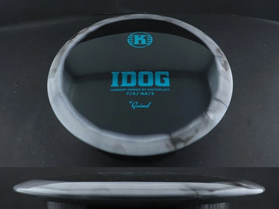 The Kastaplast Idog in K1 Grind plastic takes this straight, glidey midrange and pairs it with Kastaplast’s unique swirled, slightly firmer premium blend. K1 Grind offers excellent grip with enhanced stiffness and visual flair, making it a standout choice for players who want the Idog’s workable flight in a more stable-feeling plastic. The disc’s comfortable profile and smooth release translate perfectly into this blend, delivering clean, reliable flights on a wide variety of angles.