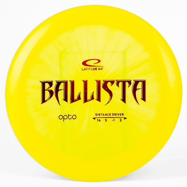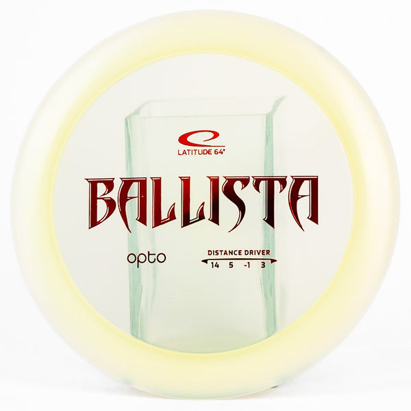 The Latitude 64 Ballista in Opto plastic is an insanely fast disc golf distance driver that is overstable with lots of glide. Latitude 64's Opto plastic is extremely durable and has decent grip; an excellent plastic for a distance driver.