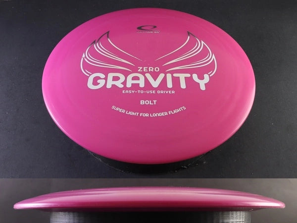 In flight, the Zero Gravity Bolt launches quickly and stays aloft with minimal power. Its high glide and natural understability help it rise, turn gently, and stretch out long, drifting flights before finishing with a soft fade. The drastically lighter weight makes it ideal for players with lower arm speeds who still want the experience of a true distance driver — without needing pro-level strength to get it moving.