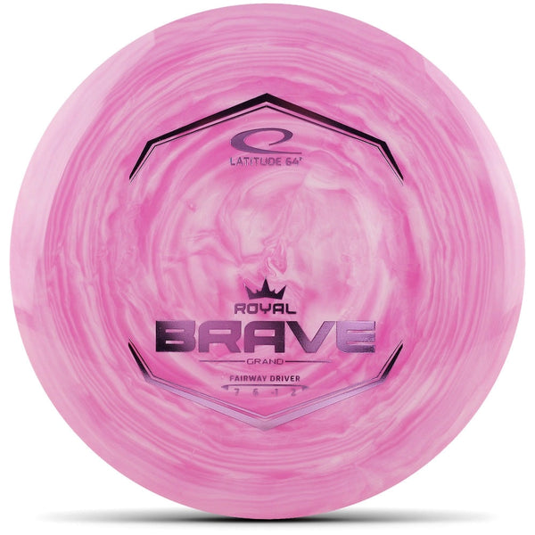 The Latitude 64 Brave in ROYAL Grand Swirl plastic delivers smooth, glide-forward fairway control with added visual flair and premium feel. Designed for workable distance and reliable shot shaping, the Brave fits perfectly between straight and stable fairway drivers. ROYAL Grand Swirl plastic provides the same trusted grip and durability as standard Grand, with unique swirl patterns that give each disc a distinct look and confident hand feel.