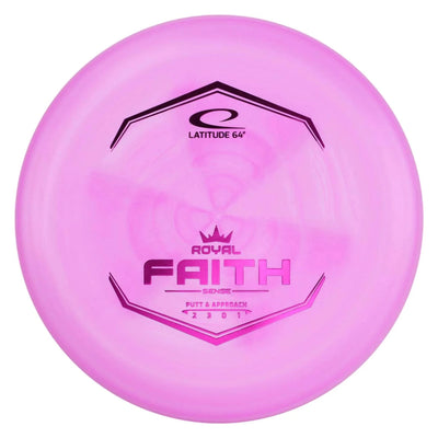 The Latitude 64 Faith in ROYAL Sense plastic is a straight-flying, beadless putter built for clean releases, confident putting, and smooth approach shots. Designed with a neutral flight and comfortable hand feel, the Faith excels at holding lines without unwanted fade, making it a dependable option both on the green and off the tee. ROYAL Sense plastic offers a premium baseline feel with excellent grip, giving players consistent control and a confident release in all conditions.