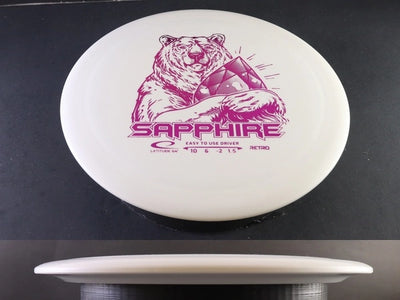 The Sapphire launches easily and stays in the air with impressive glide. Thrown flat, it shows a gentle turn before finishing with a soft, forward fade. In Retro plastic, the disc tends to beat in faster, making it easier to achieve straight flights, hyzer flips, and controlled turnovers as it seasons. It’s forgiving and rewards smooth, clean releases rather than raw power.