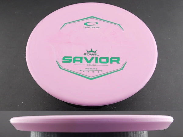 The Savior flies straight at low speed with strong resistance to turn and a consistent, dependable fade at the end. It handles power well without flipping, making it ideal for forehand approaches, short drives, and windy situations. In ROYAL Sense plastic, the Savior offers added grip and control, allowing for confident releases and predictable landings with minimal ground play.