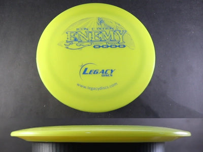 The Enemy is an overstable driver from Legacy Discs that will cut through the wind and get you where you need to go! It was designed with comfort in mind, and a deeper rim to give you maximum torque!