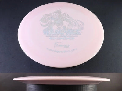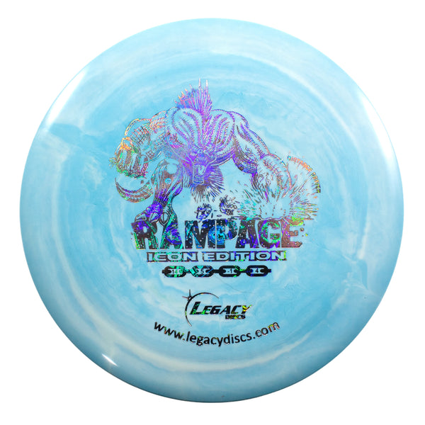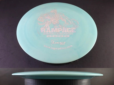 The Rampage is one of THE FASTEST distance drivers on the market…. period. This is one of only a few discs that currently have a speed rating of 14. The Rampage is not only fast, but it gets excellent glide (5), has a moderate degree of high speed turn (-1), and a substantial degree of fade (4). This disc has a very wide rim (2.5 cm), and is recommended for advanced players.
