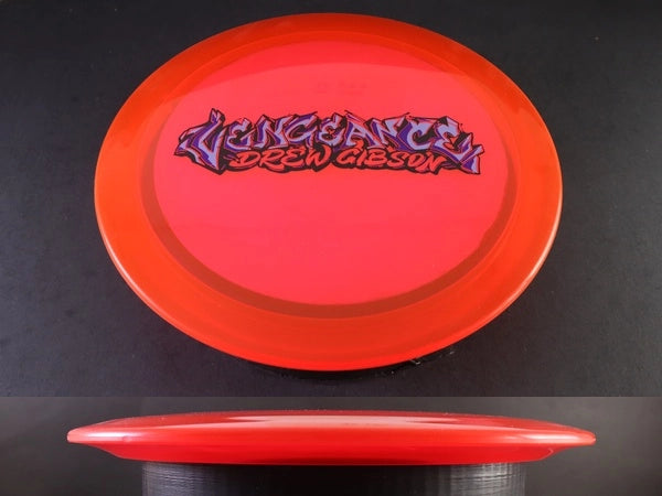 The Vengeance is a stable to overstable 10-speed driver with a flat profile that feels great whether thrown backhand or forehand. It was originally released as a Drew Gibson signature disc.
