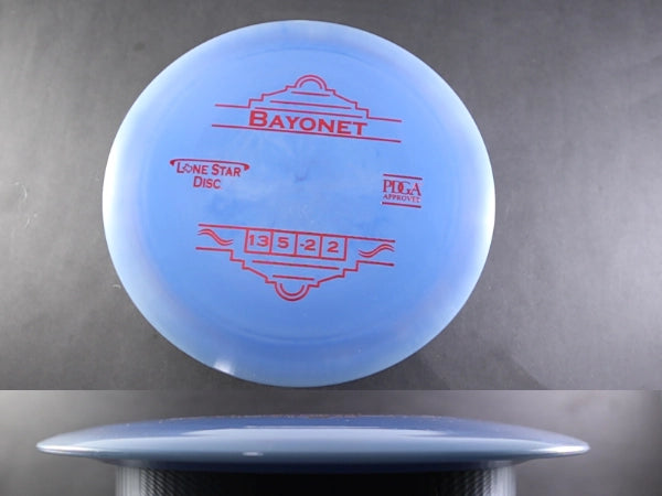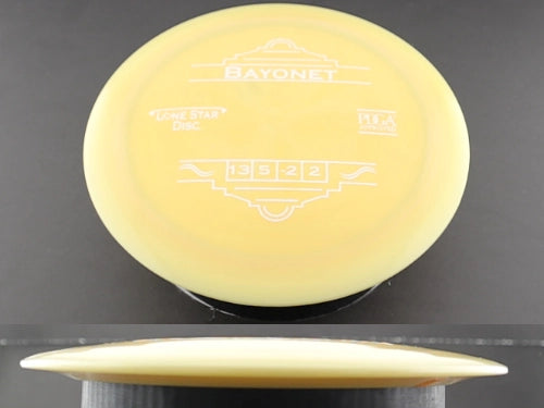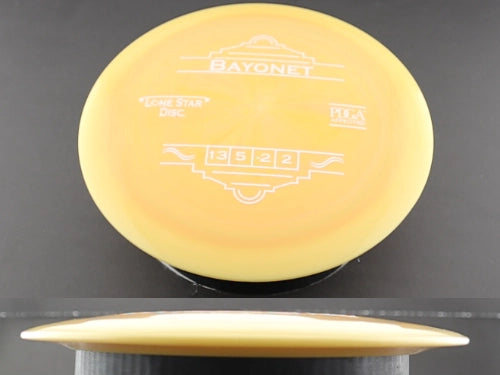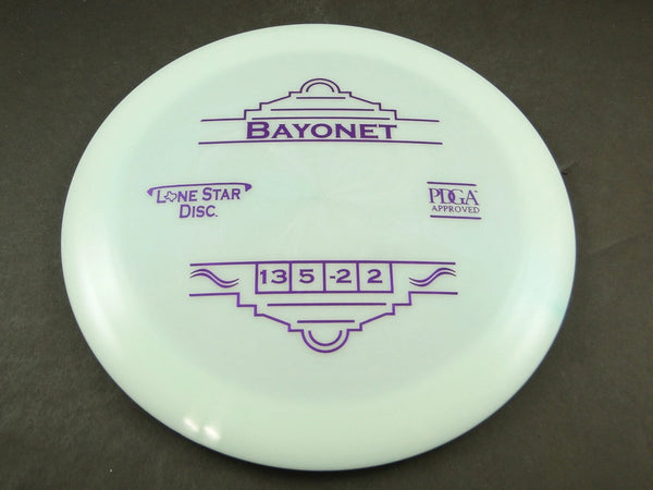 The Bayonet, by Lone Star Disc, is a high-speed, neutral distance driver. Players can use the Bayonet for maximum distance throws without too much turn or too much fade.