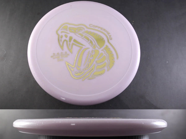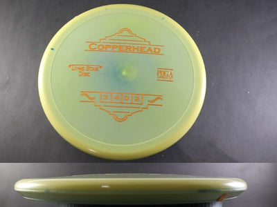 The Copperhead, by Lone Star Disc, is an overstable approach disc with a thumb-track on top of a very flat disc. It is a beaded, slow-speed disc that is great for control into headwinds or for moving around obstacles on the course.