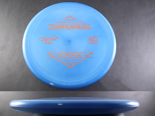 The Lone Star Disc Copperhead is a dependable, overstable approach disc made for confident forehands, headwind throws, and soft landings. With flight numbers of 3 / 4 / 0 / 2, it offers a consistent, strong fade with no turn. The shallow thumb track and flat profile give it a unique, controlled feel out of the hand.