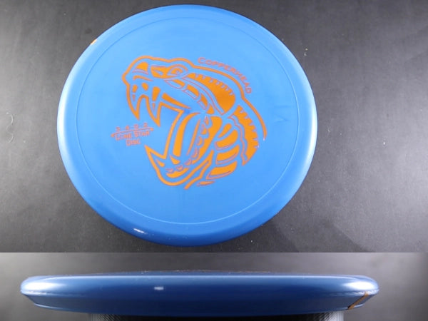 The Lone Star Disc Copperhead is a dependable, overstable approach disc made for confident forehands, headwind throws, and soft landings. With flight numbers of 3 / 4 / 0 / 2, it offers a consistent, strong fade with no turn. The shallow thumb track and flat profile give it a unique, controlled feel out of the hand.