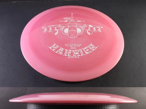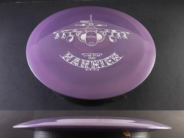 The Lone Star Disc Harrier is a high-speed understable distance driver designed for effortless glide and full-flex flights. Whether you're a developing player looking for easy distance or a seasoned thrower dialing in long turnovers and rollers, the Harrier brings distance and versatility in equal measure.