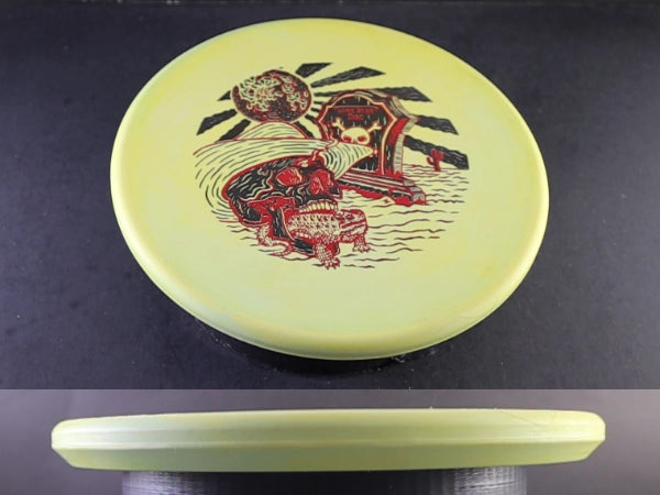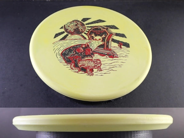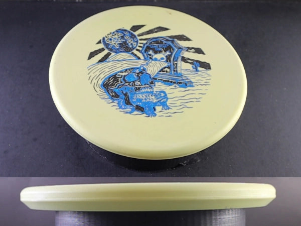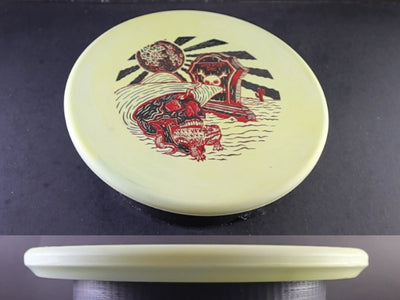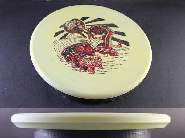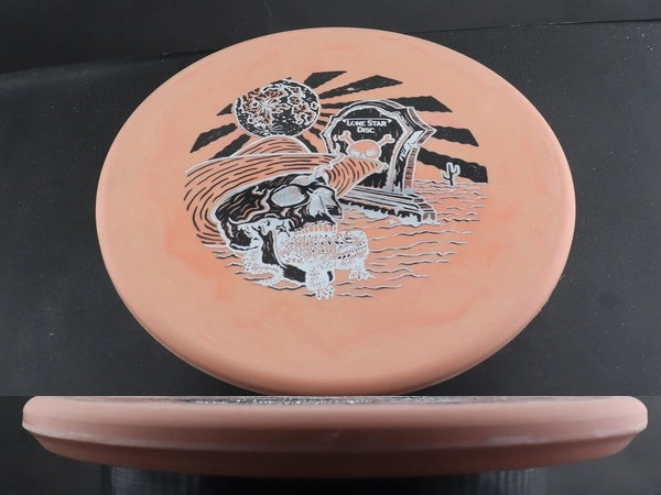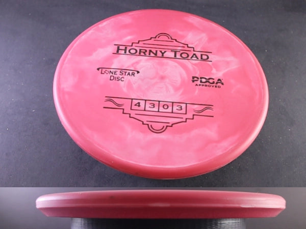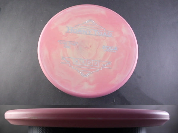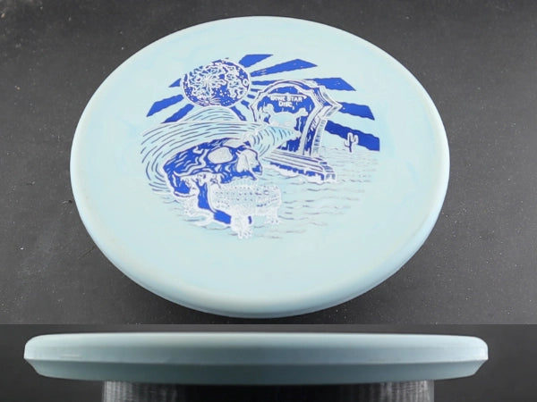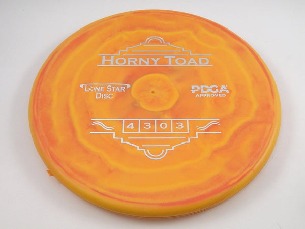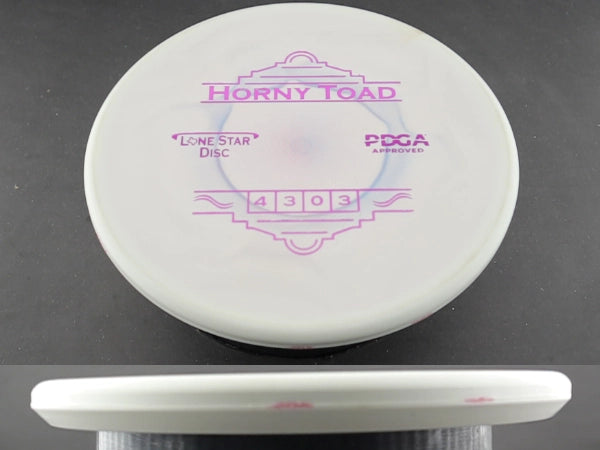 The Lone Star Disc Horny Toad is an overstable putter designed for precise upshots, offering excellent glide and consistent fade. It works well with both high-power backhands and forehands, even in toughest windy conditions.
