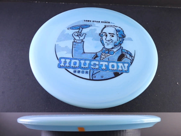 The Lone Star Discs Houston, named after Sam Houston, is the perfect midrange disc that fits seamlessly between the Ranger and Middy. Designed with a deeper grip profile, it is ideal for both forehand and backhand throws. The Houston offers a smoother flight with a dependable fade, making it a versatile and reliable choice for disc golfers.