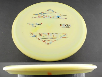 The Lone Star Discs Houston, named after Sam Houston, is the perfect midrange disc that fits seamlessly between the Ranger and Middy. Designed with a deeper grip profile, it is ideal for both forehand and backhand throws. The Houston offers a smoother flight with a dependable fade, making it a versatile and reliable choice for disc golfers.