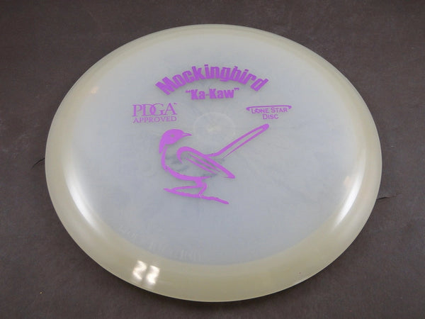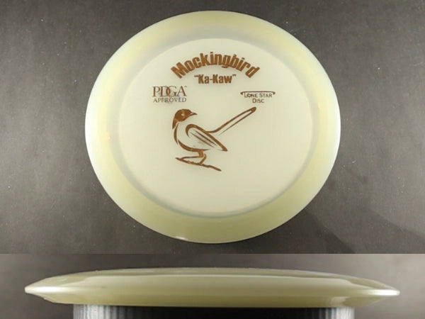 The Mockingbird (Ka Kaw!) is the perfect control driver for beginners and advanced players alike. It has the perfect straight to understable flight that everybody can make use of. It'll fly on any line you throw it on.