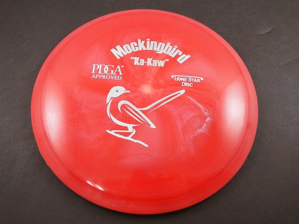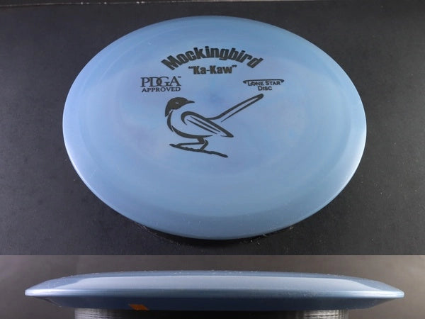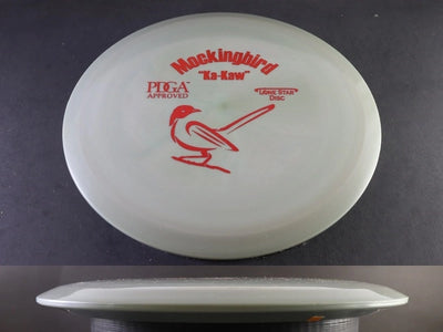 The Mockingbird (Ka Kaw!) is the perfect control driver for beginners and advanced players alike. It has the perfect straight to understable flight that everybody can make use of. It'll fly on any line you throw it on.
