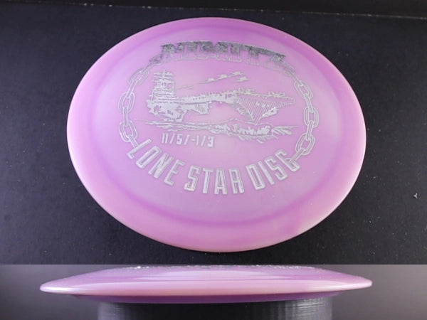 The Lonestar Nimitz is a stable to overstable disc golf driver. Named after the Fredericksburg native Chester Nimitz, the Nimitz is a disc that fits perfectly between the Curl and Warbird. This Distance Driver from Lone Star Disc has a slight turn and finishes with a reliable fade at the end of its flight. It can handle the power of experienced throwers, yet is not too fast for most players.
