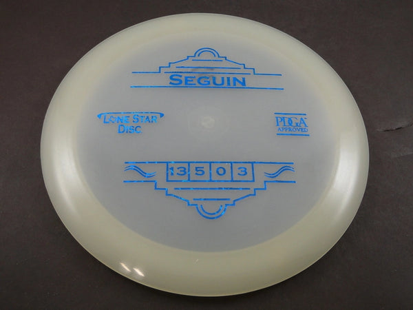 The Lone Star Disc Seguin is a wide-rimmed, overstable distance driver. The Seguin is perfect for flex lines and fighting headwinds. It's high-speed rim will be better for players of an Intermediate and higher skill level, as this overstable disc will be sure to have a bigger fade at the end of its flight.