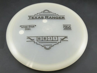 The Texas Ranger is a multi-purpose midrange that holds true to its flight numbers in most anyone's hands and regardless of the power put behind it. It flies straight with a consistent turn and reliable fade at the end. This disc is capable of being a workhorse in the beginner's thru advance player's bag.
