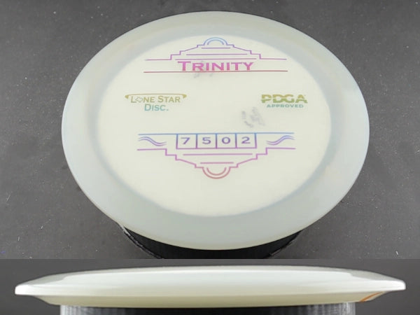 The Trinity by Lone Star Discs is a slightly overstable fairway driver designed to fit seamlessly between the Frio and Brazos. This disc is capable of handling torque and offers a reliable finish at the end of its flight, making it a dependable choice for various shot types.