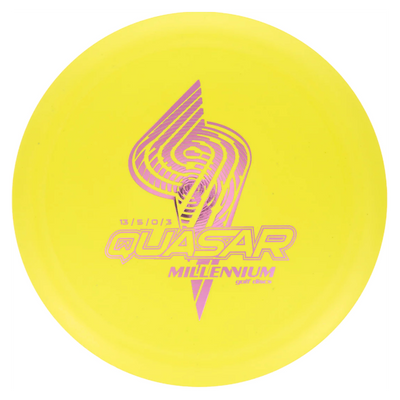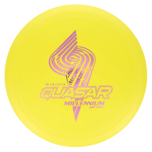 The Millennium Quasar in Standard plastic is a high-speed, overstable distance driver engineered for long, powerful throws with consistent fade. Designed for players who want to maximize distance without sacrificing control, the Quasar excels in headwinds and high-torque situations. The Standard blend provides a grippy, baseline feel that seasons gradually over time, giving players a blend of control, comfort, and workability that improves with use.