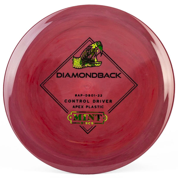 The Mint Discs Diamondback (Apex) is a stable disc golf driver that offers maximum control for any skill level of player. This disc is very moldable, allowing you to throw a variety of different angles and lines. Hyzer flips, s-curves, rollers - you name it and the Apex Diamondback can do it. A great driver for beginners to learn with. Pick up a Mint Disc Apex Diamondback today!