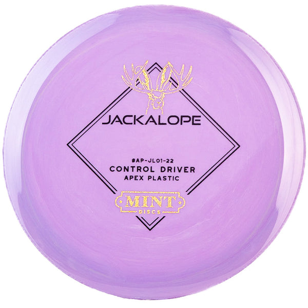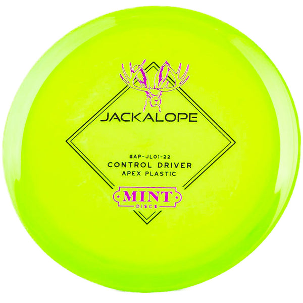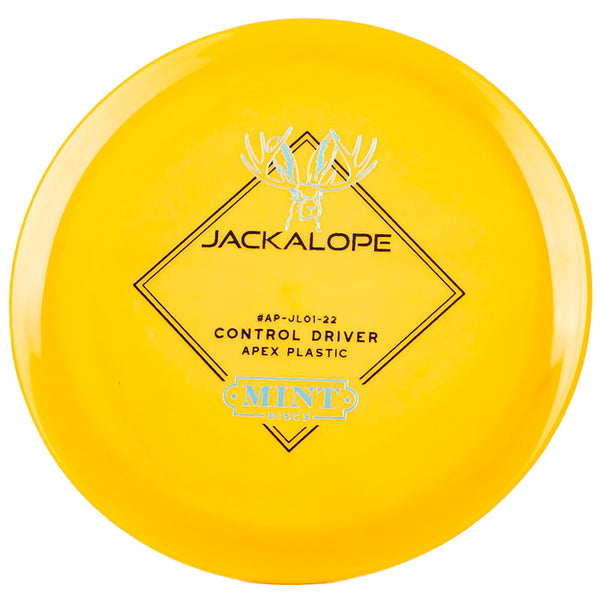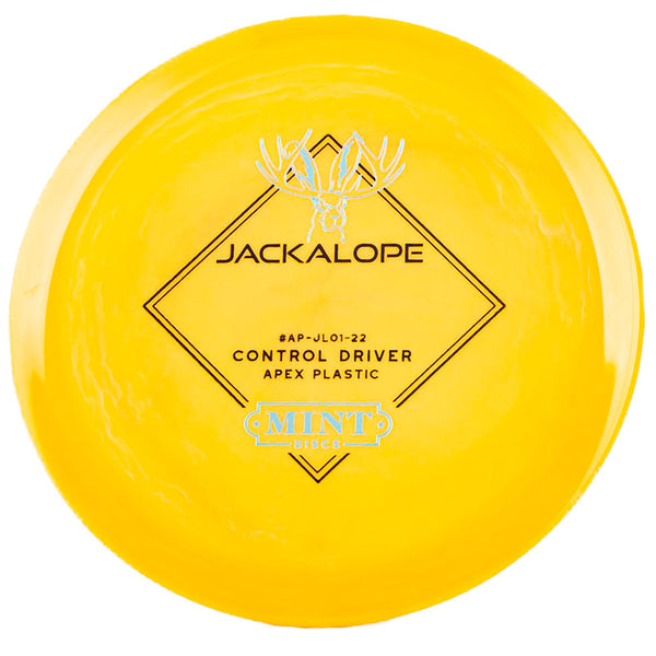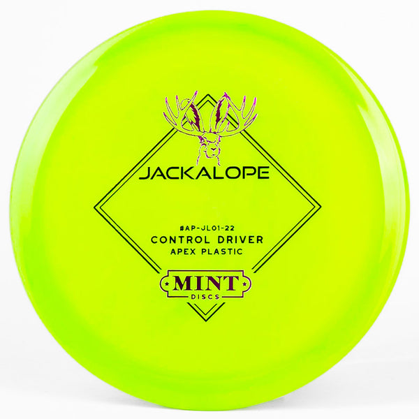 The Mint Discs Jackalope in Apex plastic is a super beginner friendly understable fairway driver that is very forgiving. Mint's Apex is their premium grade plastic blend that holds its stability well and has a slight waxy feel which allows for a clean release every time you throw it.